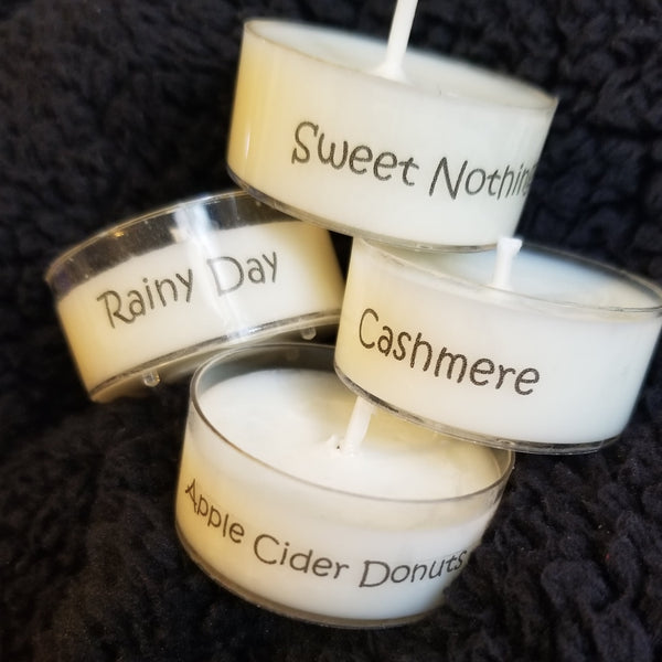 3 sampler packs available featuring tea light candle versions of our single poured luxe candles.
